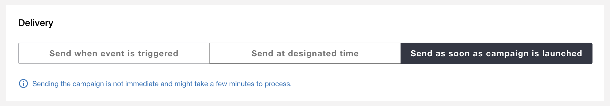 Configure the delivery time, scheduling, or immediate delivery settings.