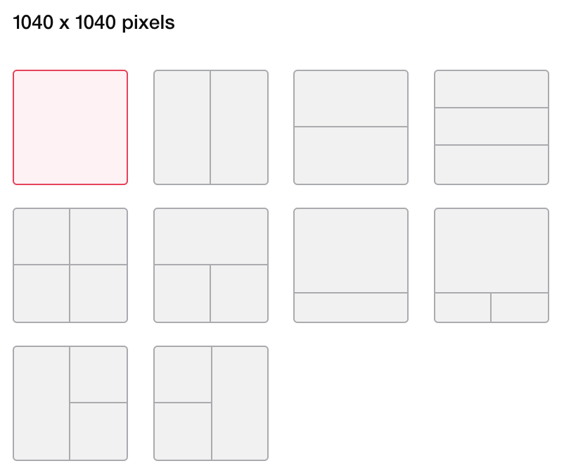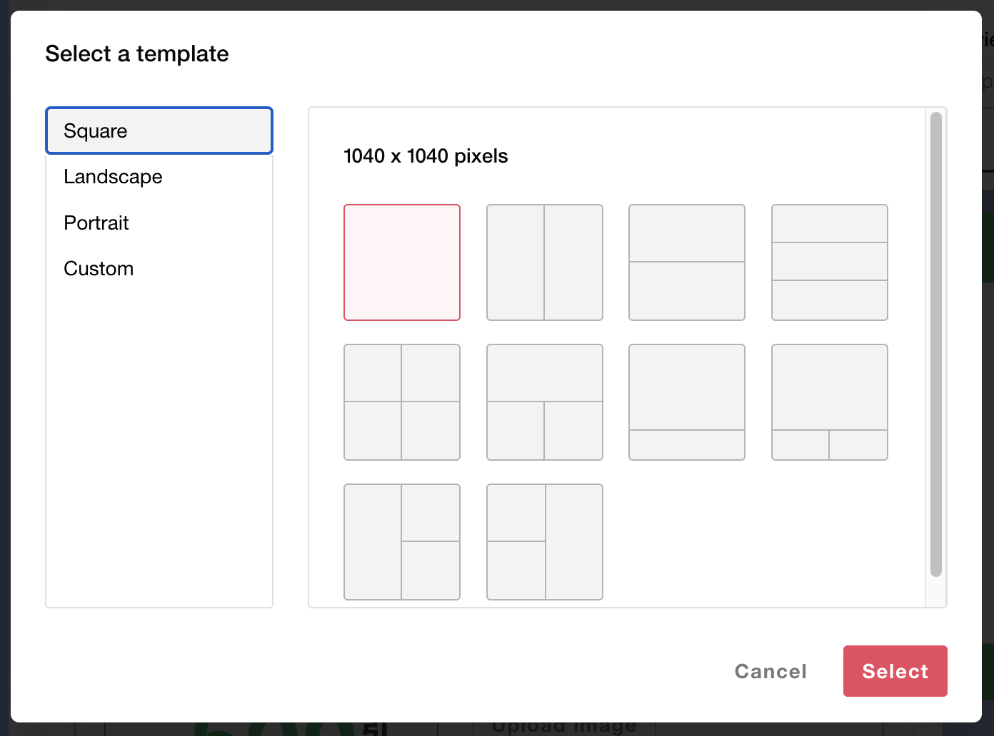 Custom templates have a fixed width of 1040px and support variable heights from 520px to 2080px.