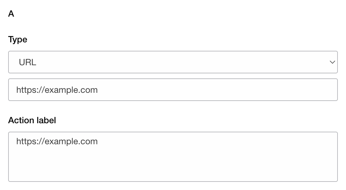 Action Label (optional) — Read aloud by accessibility features on user devices. You can enter up to 100 characters to describe the link destination or purpose.