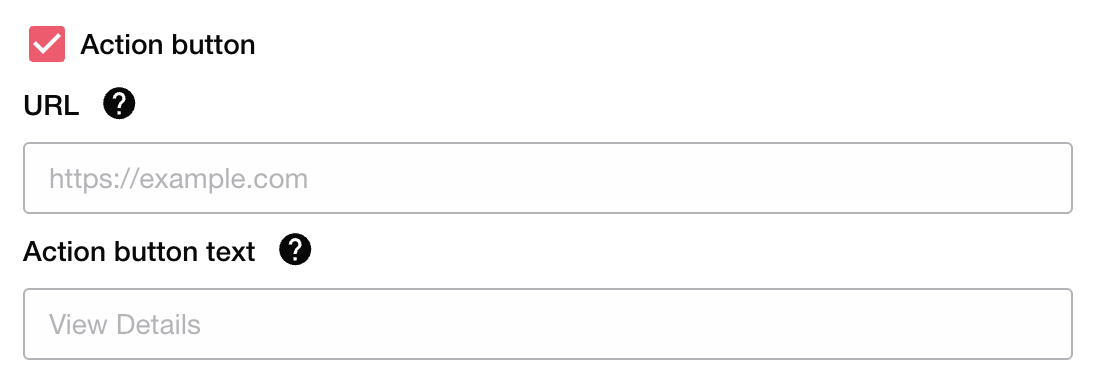 Action button text Enter the text to display on the action button.