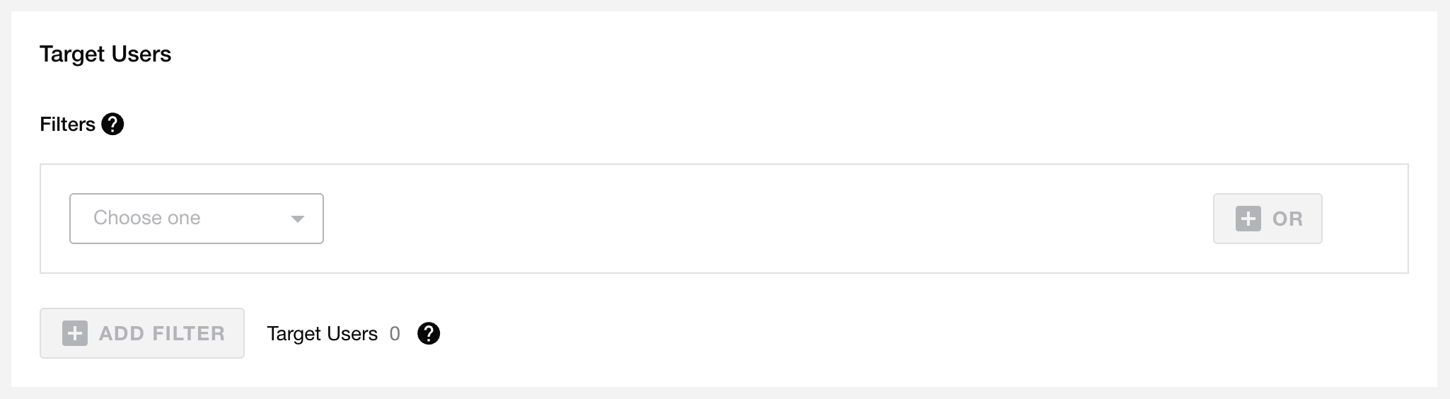 Specify the target users for the campaign. You can use filters to narrow down which users will receive the message.