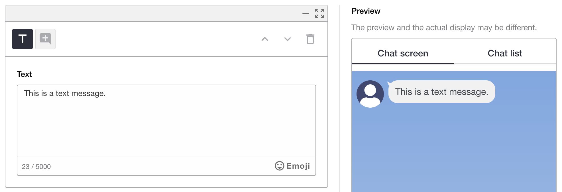 A text message is the most basic format in LINE messages. It contains only text, allowing you to communicate information simply. Click the [Emoji] button to insert emojis.