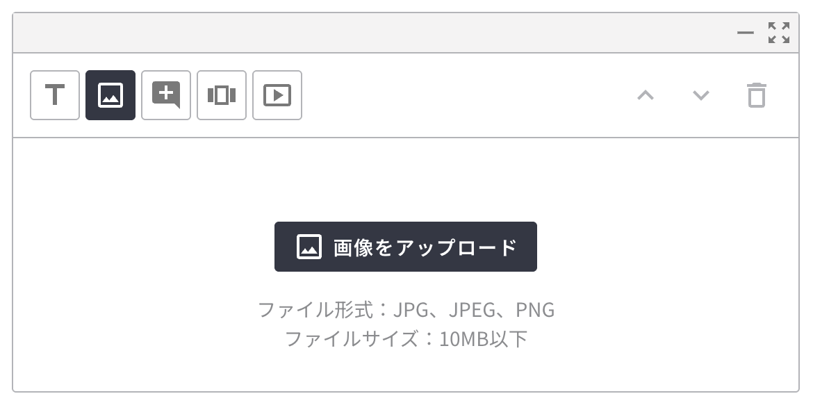 カードに表示する画像をアップロードします。ファイル形式はJPG、JPEG、PNG、ファイルサイズは10MB以下です。 |