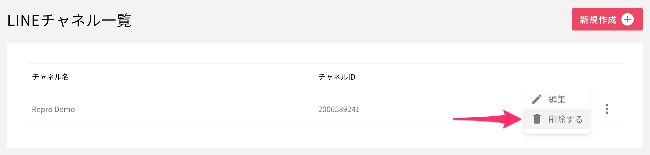 LINEチャネル設定では、 LINEメッセージ の配信に必要となるLINEチャネルの新規作成や編集、削除をすることができます。