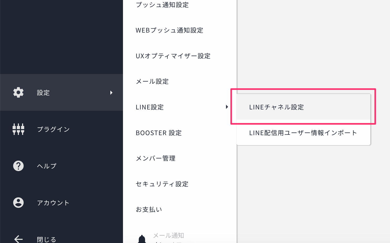 設定 > LINE設定 > LINEチャネル設定にアクセス